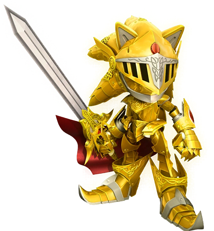 - Excalibur Sonic: Al usar el poder de las cuatro espadas sagradas, Sonic puede transformarse en una forma de caballero de color amarillo dorado llamado Excalibur Sonic. Esta forma le otorga a Sonic una fuerte armadura dorada con una capa roja, la capacidad de volar y tiene mayor velocidad, fuerza y el poder de empuñar la legendaria espada sagrada Excalibur. Tenía mayor fuerza, lo que le permitía desviar golpes masivos de espada de enemigos poderosos con facilidad y la capacidad de volar a gran velocidad. Además, Sonic conserva sus habilidades con la espada, lo que le permite detener los aplastantes golpes de espada y desviar proyectiles solo con Excalibur y usar su ataque avanzado definitivo. También adquiere mayores habilidades acrobáticas y reflejos que le permiten hacer giros en el aire para evitar ataques.