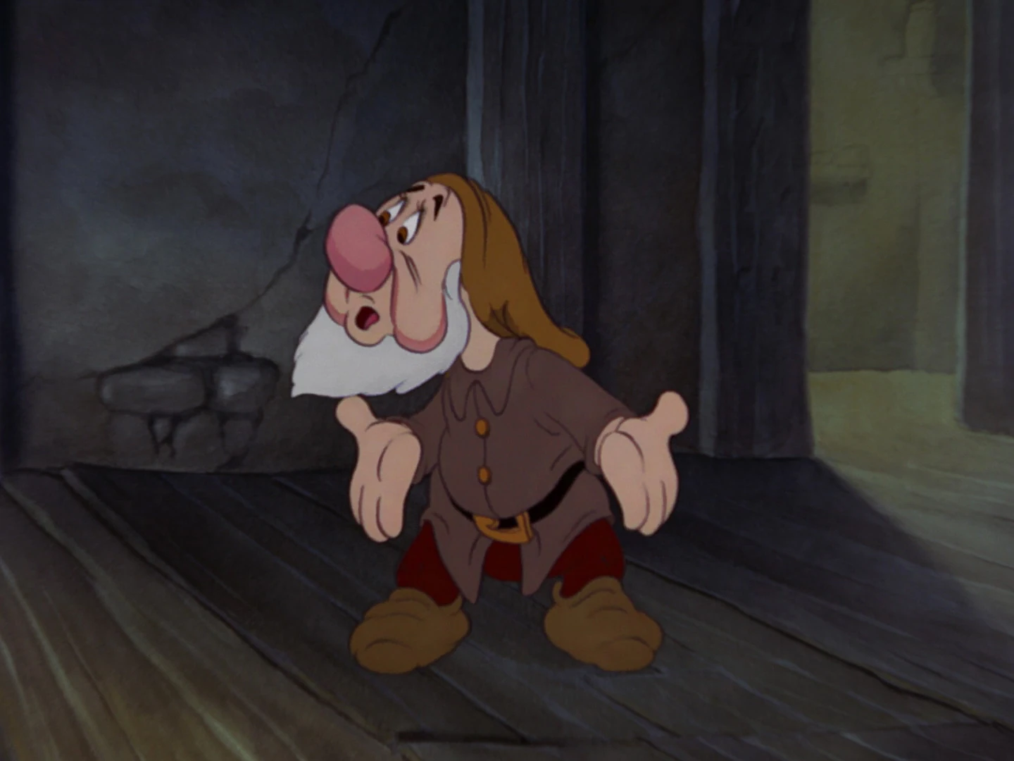 Lorsque les sept nains atteignent leur maison, Prof s'arrête soudainement car il remarque qu'une lumière est allumée à l'intérieur. Les nains pensent qu'un monstre est entré chez eux. Ils entrent discrètement et Prof leur dit de chercher partout. Atchoum et Dormeur vérifient l'évier, constatant qu'il est vide, et Atchoum pense que leur vaisselle a été volé, avant que Joyeux lui fasse remarquer qu'elle a juste été rangé. Timide montre des fleurs à Atchoum mais il est allergique, et éternue violemment, envoyant voler les autres nains à travers la pièce. Un autre éternuement est sur le point d'arriver, mais les nains l'empêchent d'arriver en enroulant sa barbe autour de son nez.