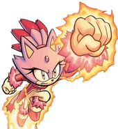 Au début, elle n'aimait pas sa pyrokinésie parce qu'elle lui laissait assumer seule ses responsabilités et que d'autres enfants la taquinaient pour son incapacité à la contrôler[14], ce qui lui faisait voir ses flammes comme une malédiction. Elle apprend plus tard à les accepter grâce aux conseils de Sonic et en vient à les considérer comme une bénédiction.