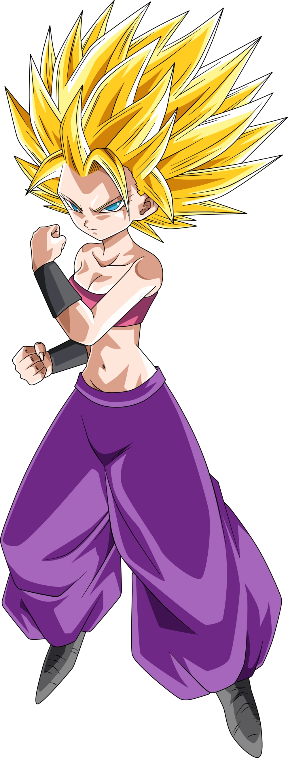 - Elle est également la première femelle Saiyan à atteindre le niveau Super Saiyan 3 ainsi que la première Saiyan de l'Univers 6 à atteindre cette forme. Il est intéressant de noter qu'elle est la première Saiyan à atteindre cette forme après avoir atteint la forme Super Saiyan 2, qui est supérieure à la Super Saiyan de troisième année.