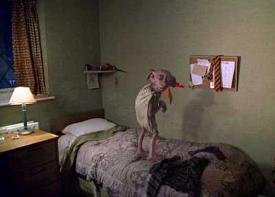 Dobby est un personnage récurrent des livres Harry Potter, mineur dans l'adaptation cinématographique. Il est doublé en anglais par Toby Jones.