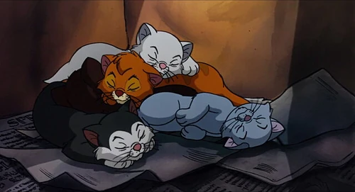 Ensuite, Fagin entre tout mouillé (après être tombé de la jetée après avoir été surpris par Sykes hurlant sa corne) et triste car Sykes ne lui a donné que trois jours pour le rembourser ou bien qui sait ce qui pourrait lui arriver, sa maison, et ses chiens. Plus tard, Fagin dit qu'il a vu le nez de DeSoto et se demande qui l'a fait, après avoir été encouragé par ses chiens, et qu'il est fier que ce soit Oliver, révélé par Roublard. Après que Fagin ait accepté Oliver dans le gang et lu une histoire, à laquelle il était réticent au début, puis coopératif après avoir entendu et vu Einstein triste, pour les chiens et le chat, Roublard éteint les lumières, sautille sur son lit et se rend à dormir. Oliver, qui fait la sieste sur les genoux de Fagin, le regarde, court à son lit et se blottit à côté de lui. Au début, Roublard ne peut pas comprendre, mais après avoir regardé Rita, qui est à moitié endormie et qui a vu Oliver se précipiter vers lui, et Oliver sourire, il comprend rapidement que le chaton l'aime, puis s'endort. Rita aussi. Roublard sourit et se recroqueville à côté de lui. Oliver fait cela pour montrer qu'il aime Roublard.
