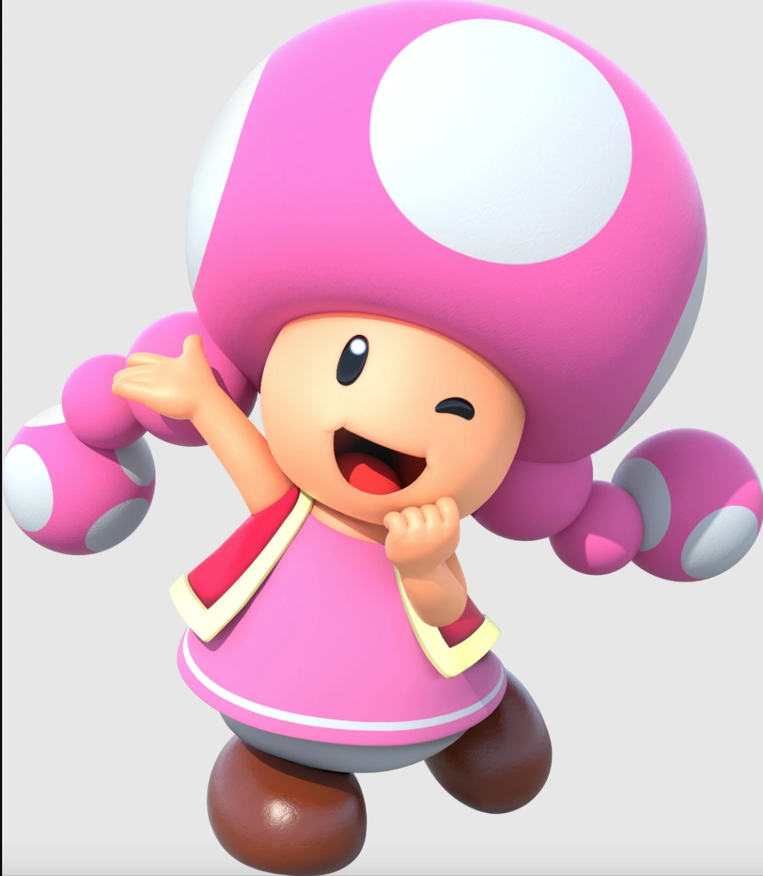 Toadette est un personnage majeur de l'univers Mario. Elle apparaît pour la première fois dans Mario Kart : Double Dash !! afin de donner un compagnon à Toad et pouvoir jouer à deux. Dans la plupart des autres jeux, elle se contente de caméo, comme le Capitaine Toad.